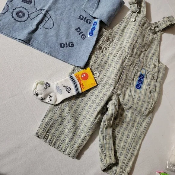 Gymboree Vintage 2004 Dig Dig Dig 3-6 month Shirt, 3-12 month socks, Overalls Outfit NWT. Located A24