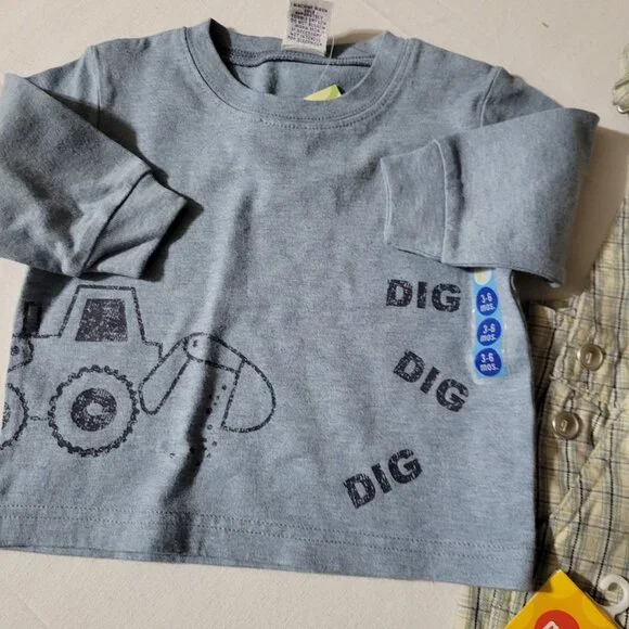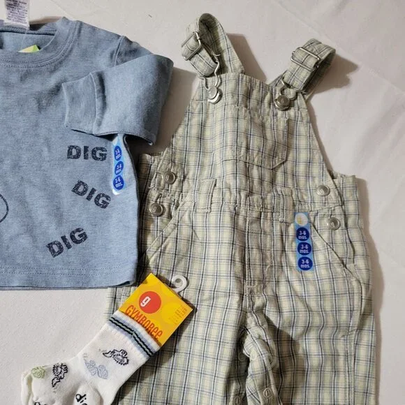 Gymboree Vintage 2004 Dig Dig Dig 3-6 month Shirt, socks, Overalls Outfit NWT.