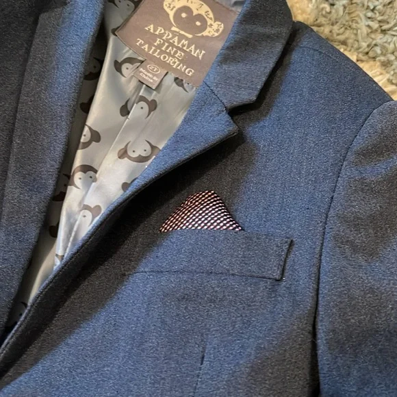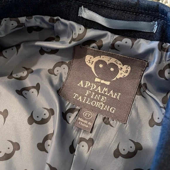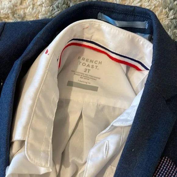 Appaman navy blue suit, including a French toast long sleeve button down shirt. Also a navy blue tie. Size 2T.Only worn once for a wedding. Excellent condition.
