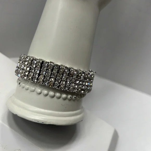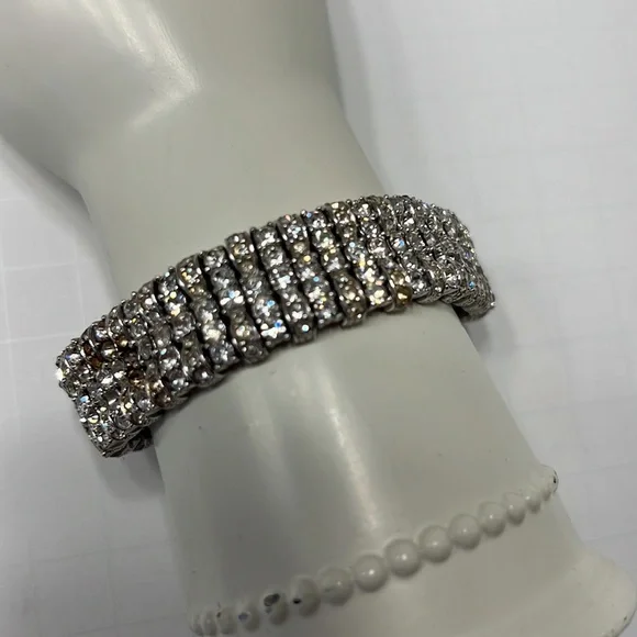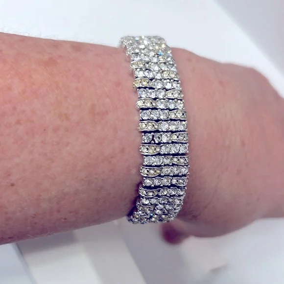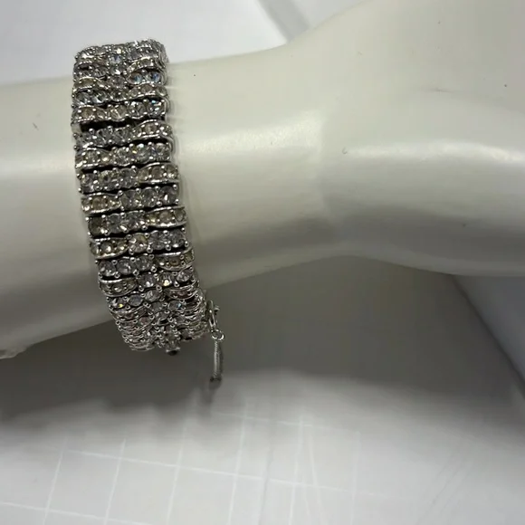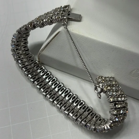 Ciner Vintage Bracelet with safety chain clasp. Stunning vintage piece with beautiful rhinestones. Clasp functions perfectly, 3 stones missing on under side of bracelet. Please...