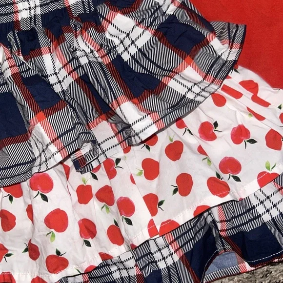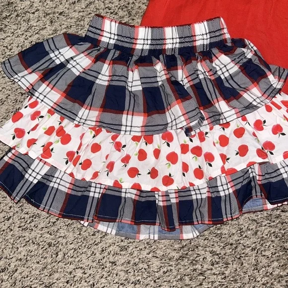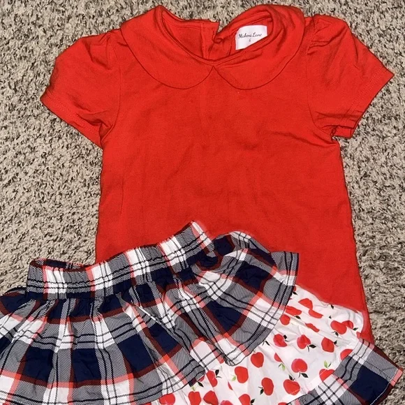 Makena Lane matching apple skort Red peter pan top Girls size 6 worn once3 buttons on back of top - really great fabric and thickness to top! Built in shorts are awesome tooSo gorgeous!! This was a must have for us!! Will add stock photos to show u!