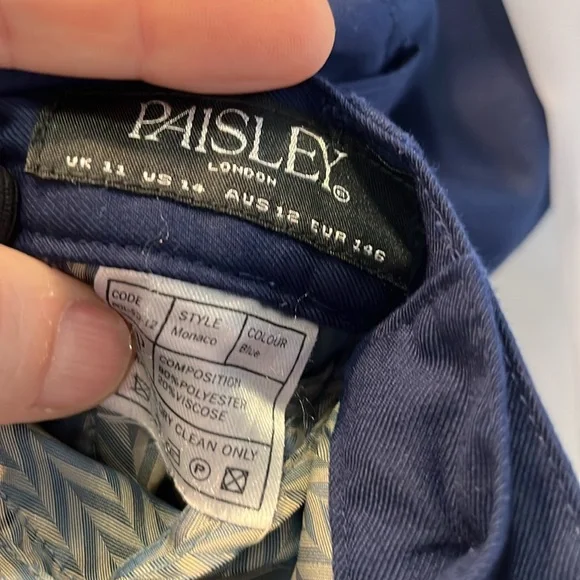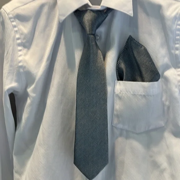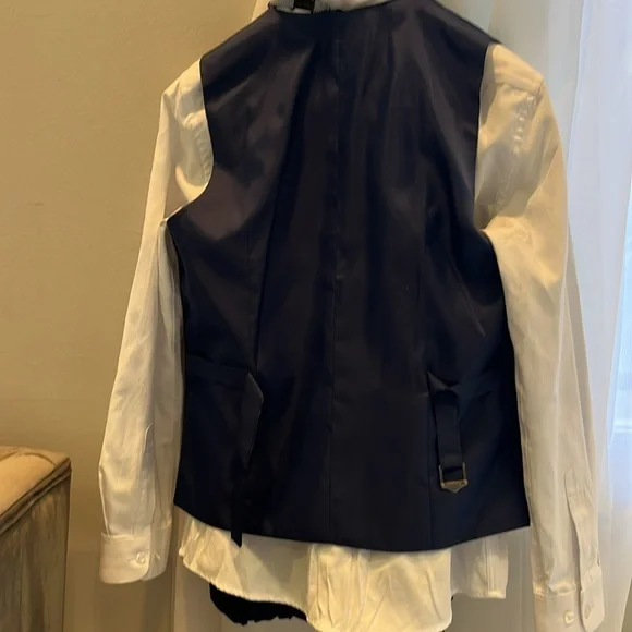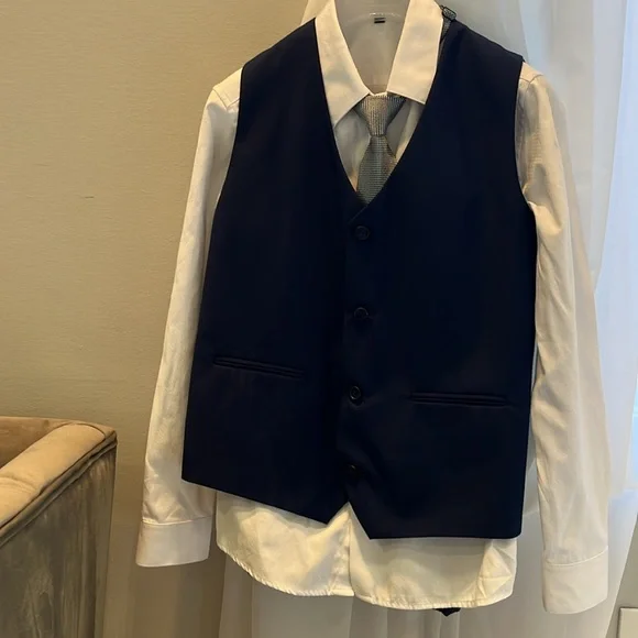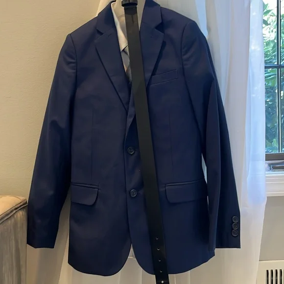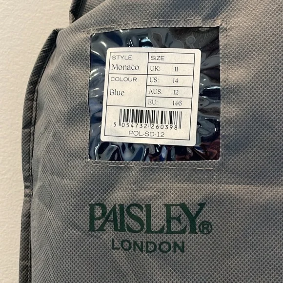 Selling my son’s three piece Paisley of London suit with shirt tie matching handkerchief belt and it all comes in the original garment bag. The size is US 14 UK 11. This uit has onky been worn a few times. It is free from stains, rips, pulls, thread openings. It is like new. It comes from a pet and smoke free home. From the website the suit is called Boys navy wedding suit - Monaco.