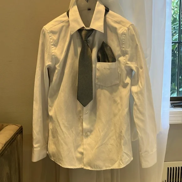 Selling my son’s three piece Paisley of London suit with shirt tie matching handkerchief belt and it all comes in the original garment bag. The size is US 14 UK 11. This uit has...