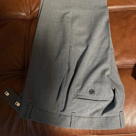 This suit was only worn once and is fresh out of the cleaners. I have added the vest as well. Jacket is a size 14 with two inside pockets. In absolutely excellent condition. The pants are a size 16.