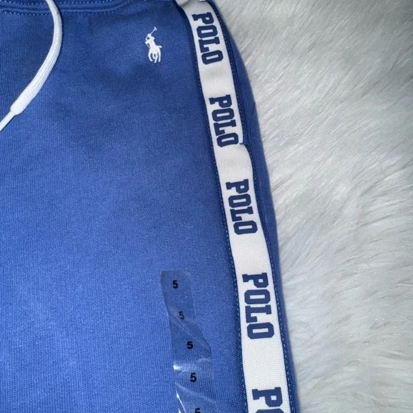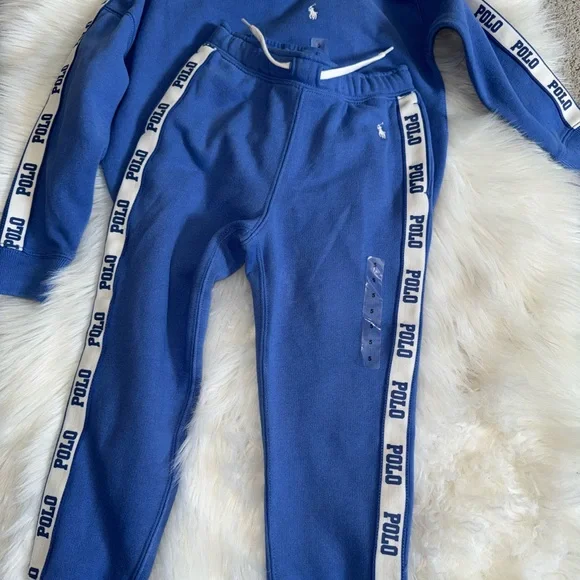 Beautiful brand new Polo Ralph Lauren Jogger set. Matching sweatshirt and elastic waist joggers with front logo and side logo. Size 5
