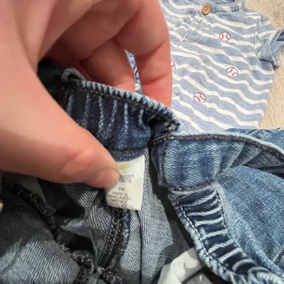 NWTAssorted baby clothes, 6-12 MBear fleece footie - 6-9 MOld Navy dinosaur outfit - 6-12 MCarter Moose set - 12 MUsedLittle Me baseball shorts romper - 9 MTucker Tate overalls - 9 M