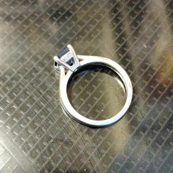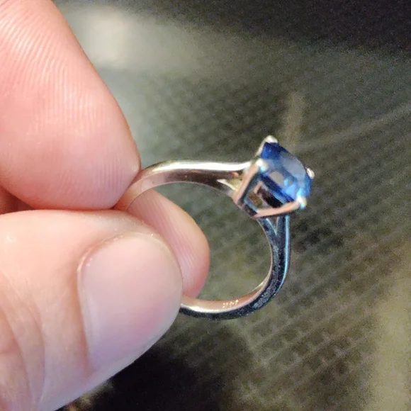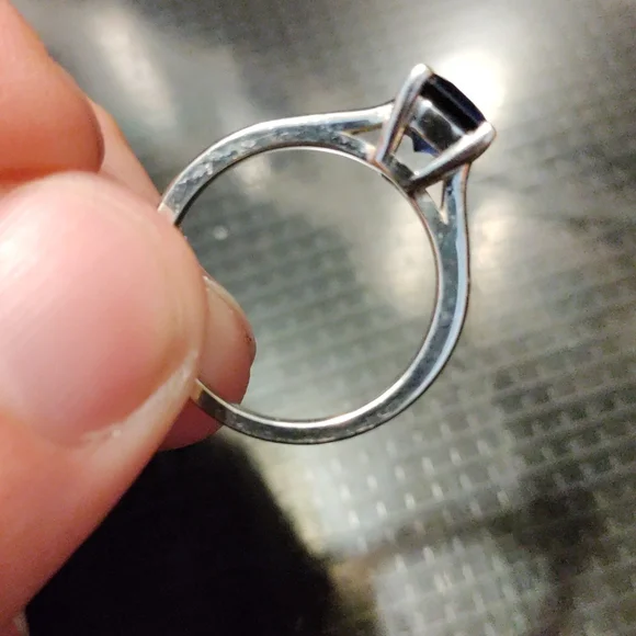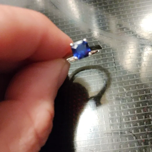 10k white gold ring with blue topaz stone princess cut size 6.5