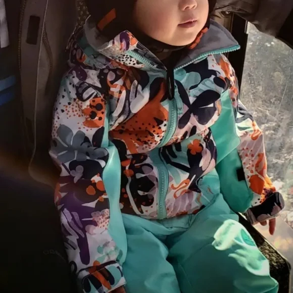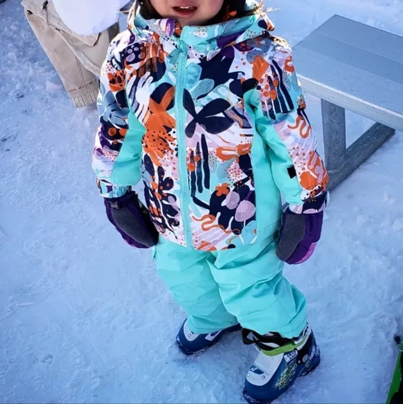 Vibrant snowsuit with a playful pattern. Only worn a couple times and washed.Purchased full price at Christy Sports.Posted a couple pics of my daughter wearing.