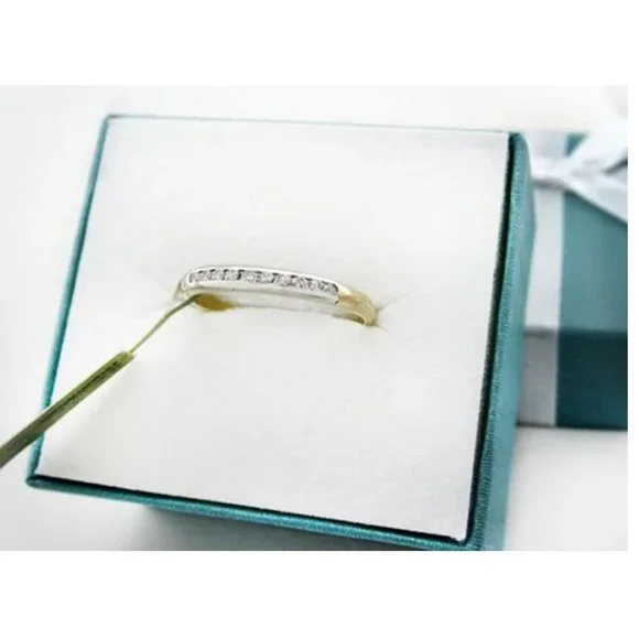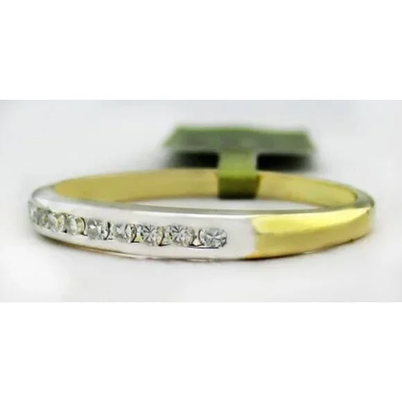 Carat: 14k Yellow Gold (not plated)Gemstone Type: 10 Genuine DiamondsTotal weight - 0.20 caratsDiamond grades:Clarity grade . . . SI2Color grade . . . GHCut grading . . . very goodShape: round Gold weight:1.60gramsFinger Size: 6.75(FREE -resizing service - if needed) Typeof setting: channel Dimensions: 2.5 mmring width