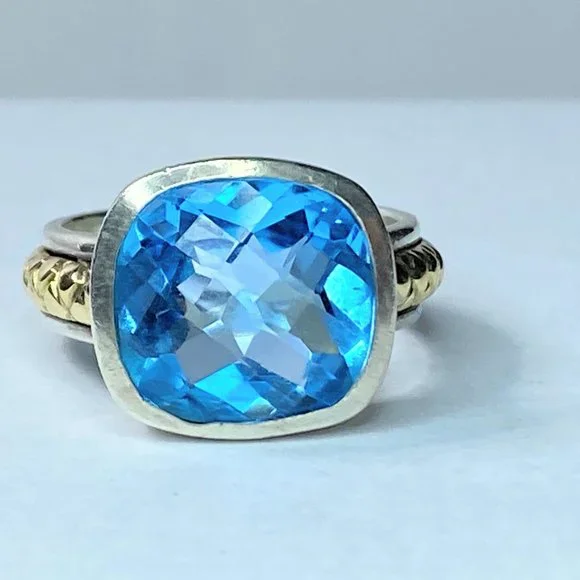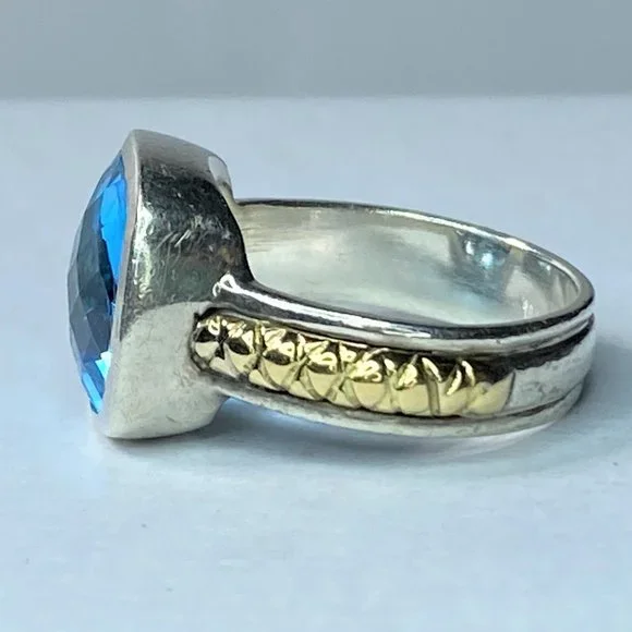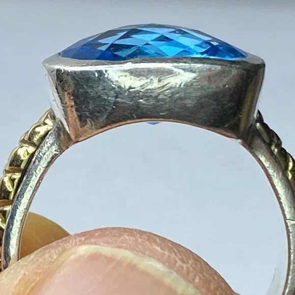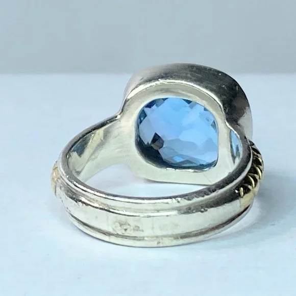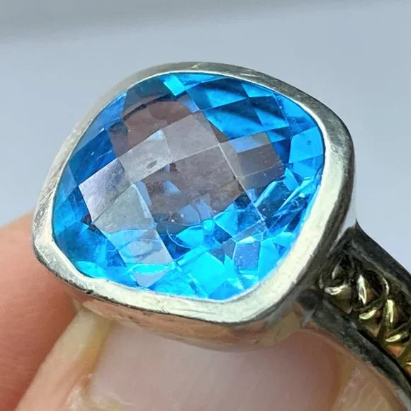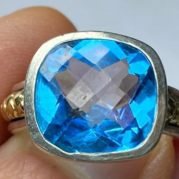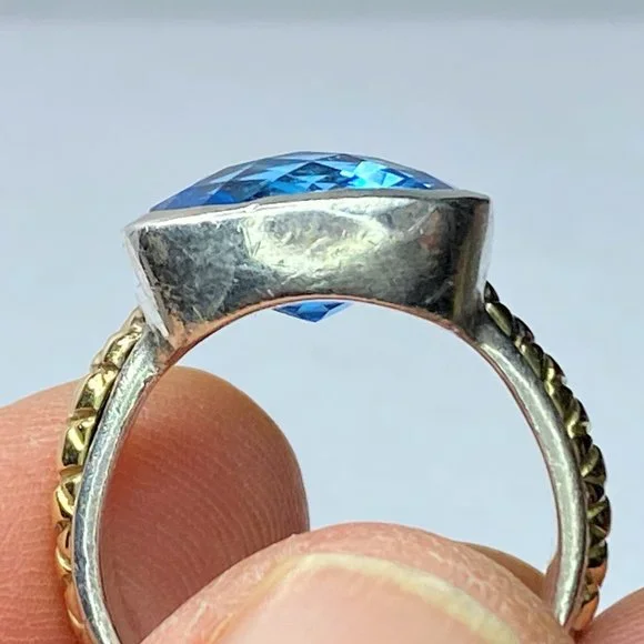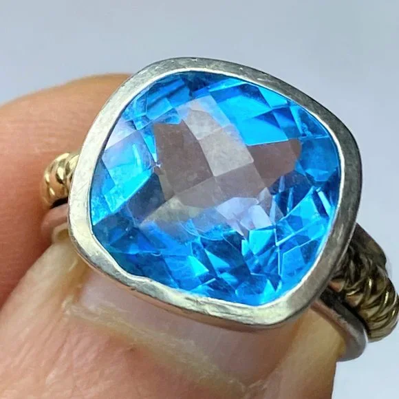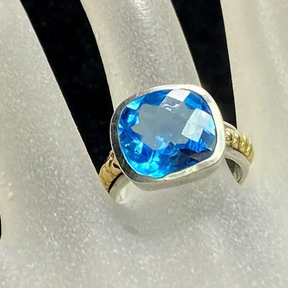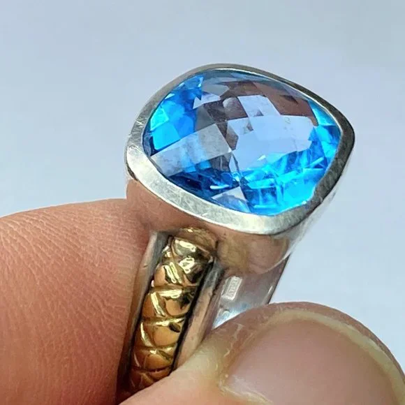 18K/Sterling 925 faceted13.2 x 12.4mm natural Swiss Topaz bezel ring sz 8 9.9g
