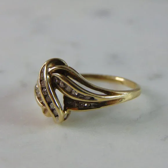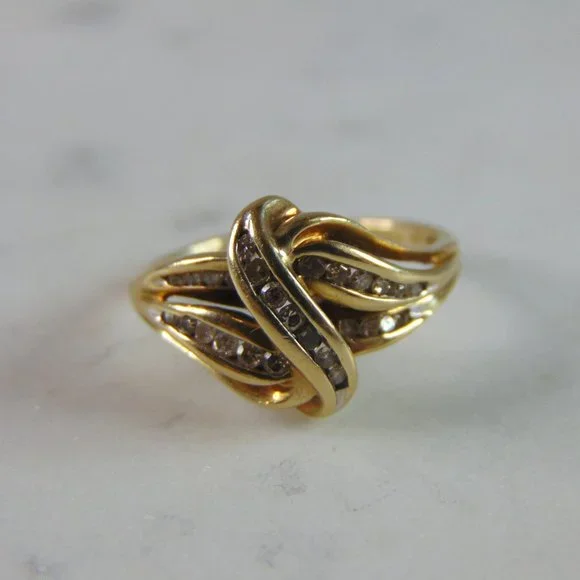 Womens Vintage Estate 10K Yellow Gold Diamond Cluster Ring 2.8g E720