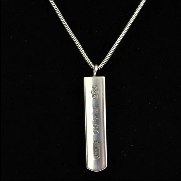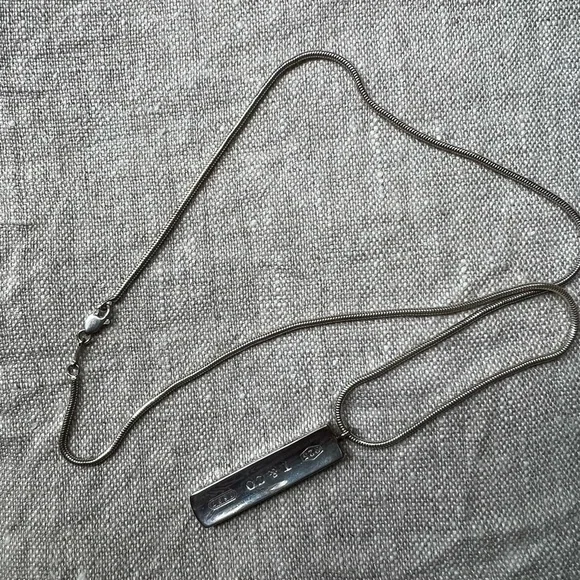 Unisex sterling silver bar style pendant on a silver snake chain. Never worn.Questions? Leave a comment below!