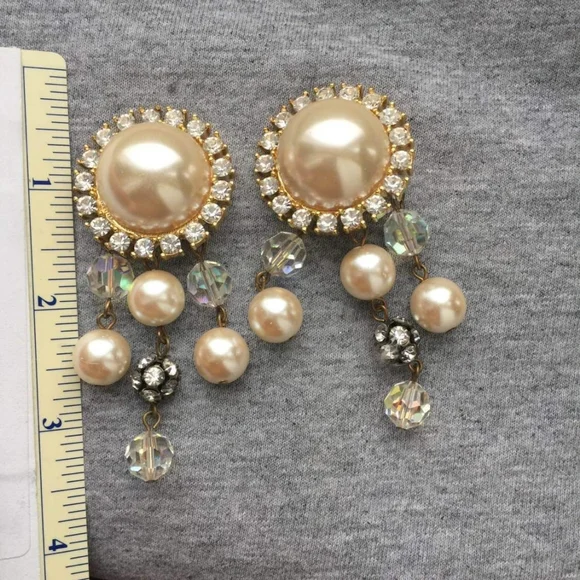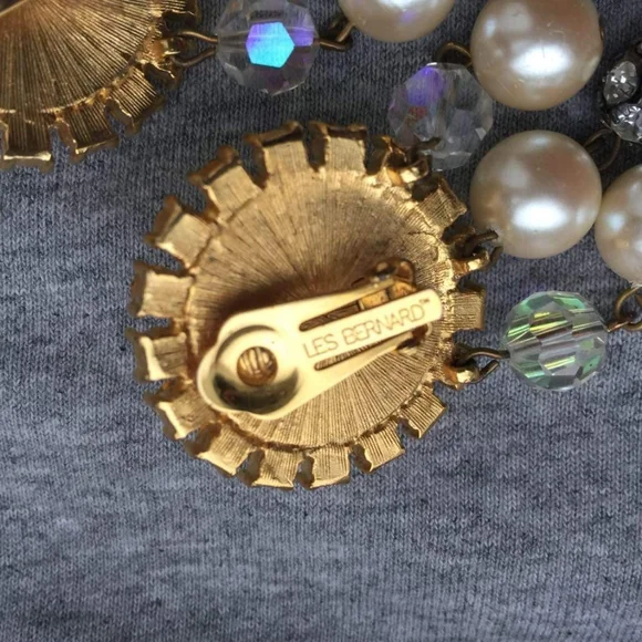 Fabulous! LES BERNARD PEARL PAVE EARRINGSlarge bigGold Tone Pearl Fringe clip on Runway Designer mogul Couture RARE!High end luxury Couture Designer Runway fashion! 1980´s SPECTACULAR!!! TRULY GORGEOUS!!!Condition: In great vintage condition.The clips work properly and hold secure.Signed on both earrings .Please, look at the pictures, they are part of the description. Any Dark Shadows are from the camera.Stunning statement look!Don´t forget to heart our shop to get updates in your news feed for our new arrivals!We always make sure to pack with extra care for safe journey. We have something for everybody here at My Sales Rock! Check our shop, we might have something to Rock with your style!
