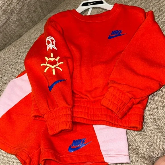 Nike - Matching Set - 3 piece set ( includes shorts, sweatshirt with elastic band on bottom to accent waist, & matching cropped t-shirt) Toddler Size: 4 xs (3-4 yrs) - this set is in excellent condition! I’m sad to see it go but my daughter outgrew it unfortunately