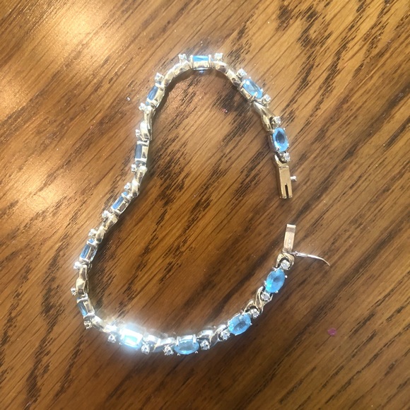 Purchased at Silverberg Jewelers. Beautiful & delicate tennis bracelet! 7 1/2” including clasp! 12 blue topaz & 24 miniature diamonds. Safety clasp!