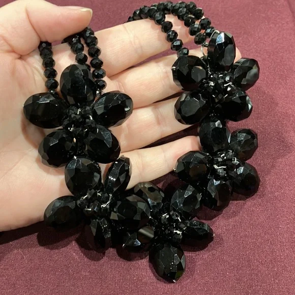 Black Flower Statement Necklace G1