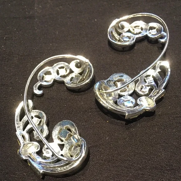 Stunningly beautiful and rare, these silver metal and clear rhinestone ear wraps make an elegant statement. Not signed but very well constructed with high quality materials. The...