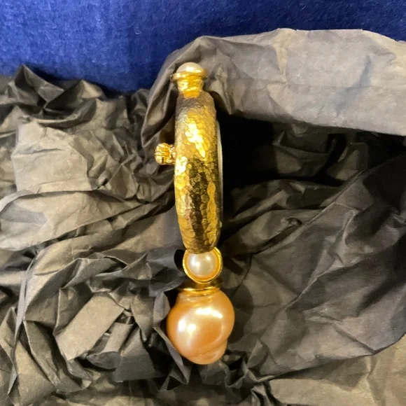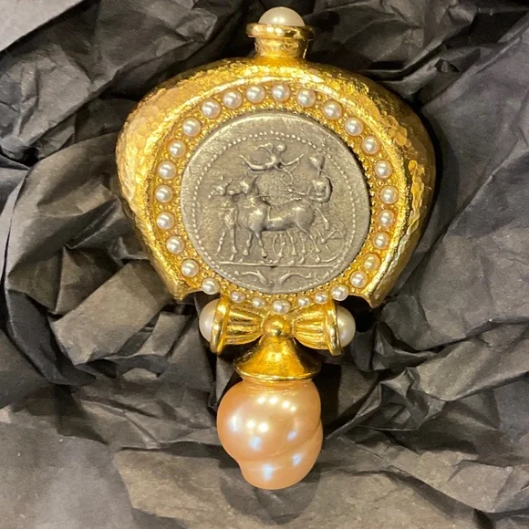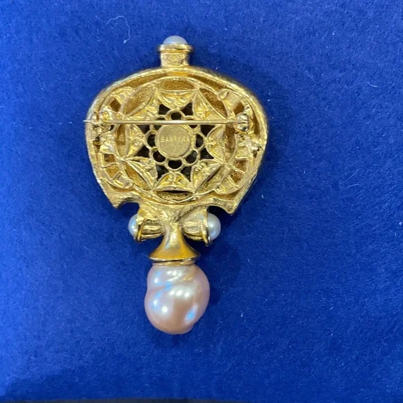 Stunning vintage Barrera pearl and hammered gold plated pin.Perfect condition3” long x 2” wide