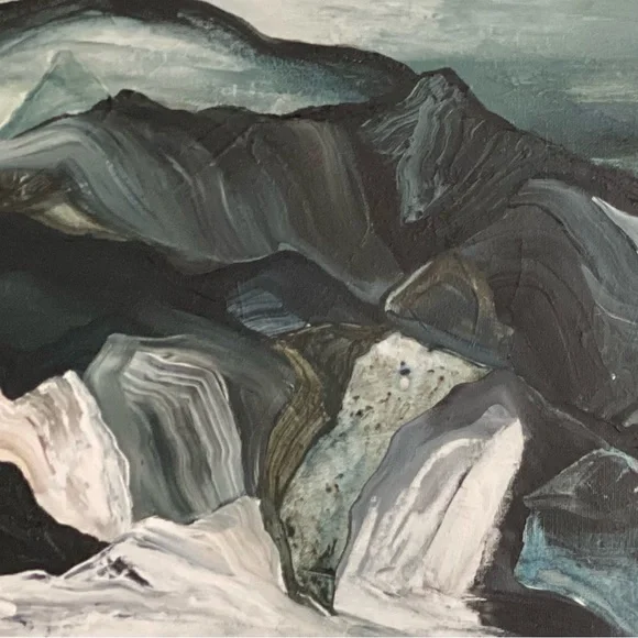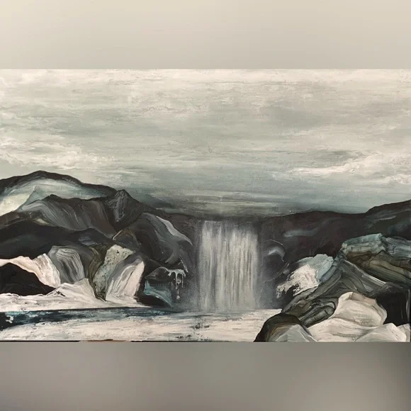 Enhance your space with this stunning abstract waterfall canvas art. Featuring soothing gray and white tones, this piece adds a touch of elegance to any room. Original Hand painted with acrylic paint on canvas in 2024 by K. Kiernan. New. 2ft x 3ft. 7/8 depth. Not framed.