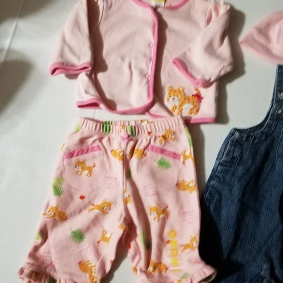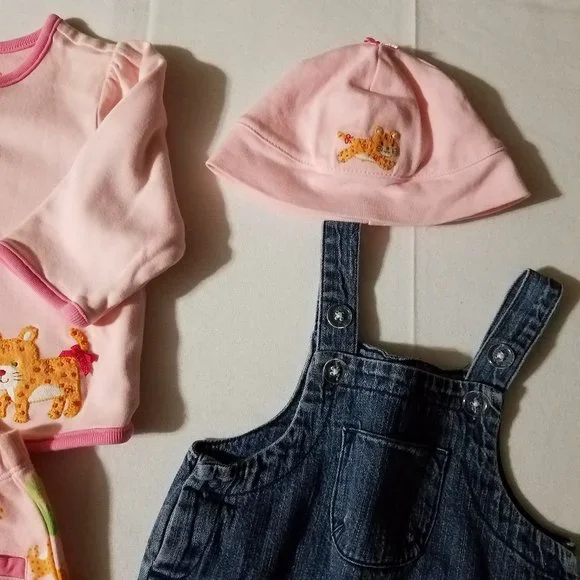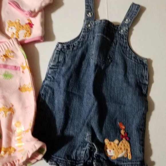 Gymboree Jungle Parade 3-6 month NWT Capri, 0-6 month hat, Used 3-6 overalls & J