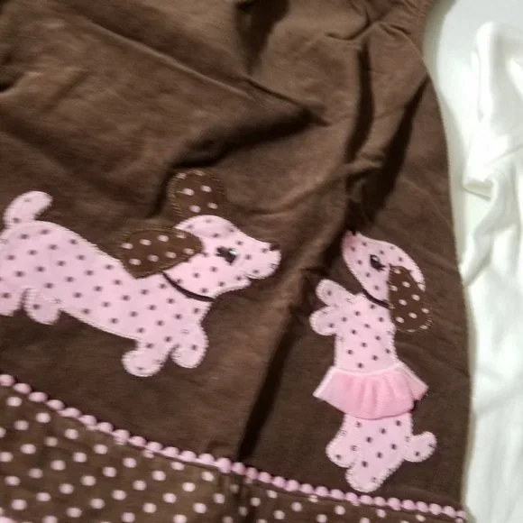 Gymboree Polka Dot Puppy NWT 6-12 month brown corduroy dress, diaper cover, ruffled bum tights & bodysuit. Located A16