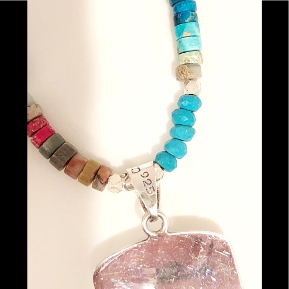 Vintage Cross (circa 1960-70) in Sterling Silver with hand beaded Turquoise and Imperial Jasper Rondelles with Karen Hill Tribe .999 beads and charm tag.Features a large sterling...