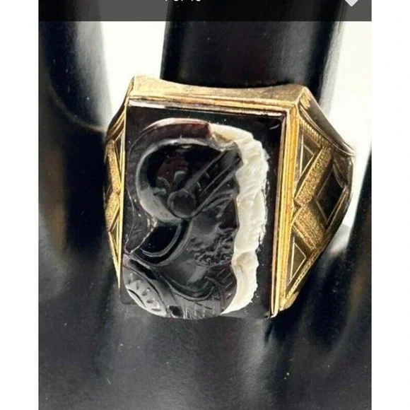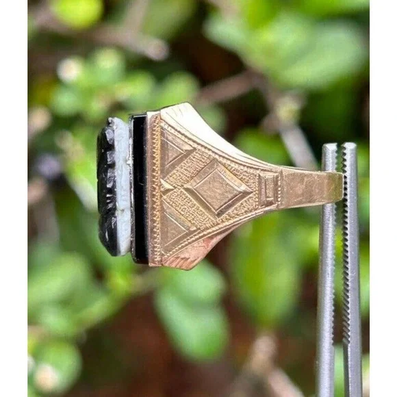 Circa 1940s 10 Kt GOLD Black Onyx INTAGLIO RING SIze 10