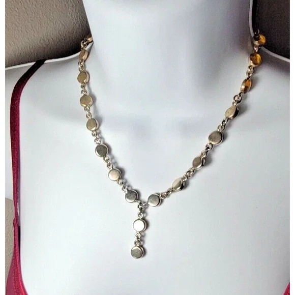 Vintage Sterling Yuzi or Juzi? Signed Mexico pressed Flowers In Resin Link Lavalier Necklace. Necklace is 20 inches long and weighs 30.2 grams.Please read sellers instructions and check out mystore. Most Jewelry, and other items, are vintage and will have some light wear from use, I describe all of my quality items to the best of my ability. I am not a jeweler or a gemologist, and I do the best I can on my descriptions and any flaws will be noted. I lightly clean/buff the vintage jewelry so the patina is preserved. Please ask questions before you bid, pictures are part of the item description. Display boxes and props do not come with items. Returns accepted within 3 business days of receipt, contact me the day you receive the item, and only if item has unnoticed flaws, a prompt refund will be given. Returns must be in original condition, and return shipping must include tracking information. I charge a 10% restocking fee for other returned items and return shipping is the responsibility of the buyer. I will be happy to leave feedback after positive feedback is left from buyer. All vintage items come from a smoke free home. I am only selling in the US at this time. Thank You :)