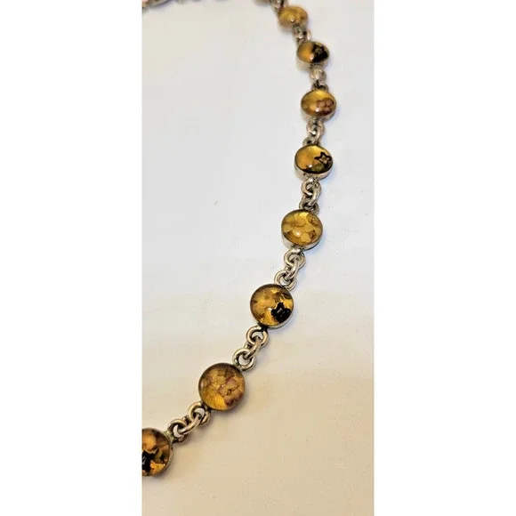 Vintage Sterling Yuzi or Juzi? Signed Mexico pressed Flowers In Resin Link Lavalier Necklace. Necklace is 20 inches long and weighs 30.2 grams.Please read sellers instructions and...