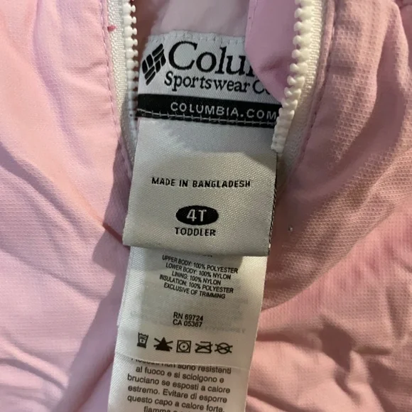 Pink and precious! includes ski bib and ski Jacket both Columbia and in great pre loved condition