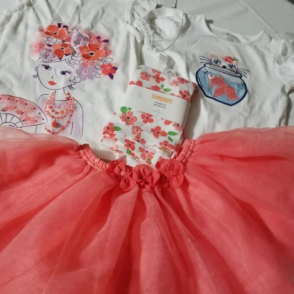 Gymboree Cherry Blossom NWT size 4 girl top, 5T Fishbowl top & leggings, 4T skirt I will say used but I think I bought NWOT. Located A9