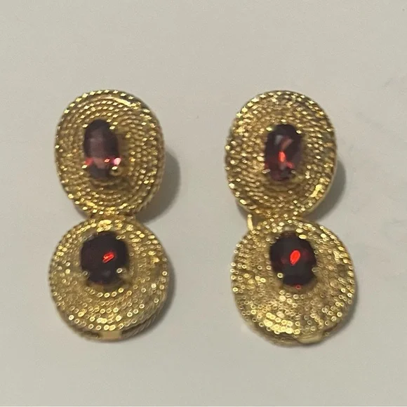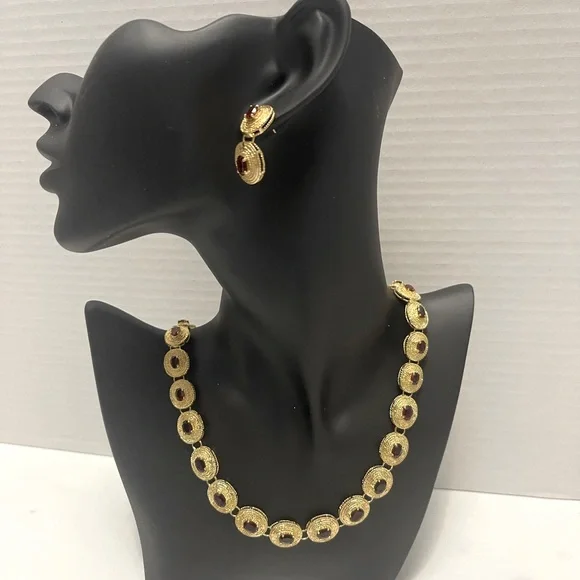 Necklace 81/2 inch with earrings 1 inches combo, Sterling silver 925 Dipped in 18k gold with semi precious stones, made in Thailand, (Garnet stones)