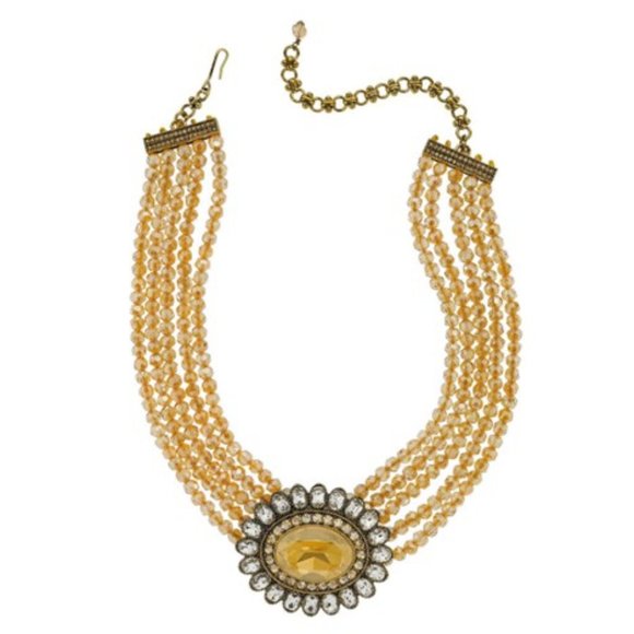 Heidi Daus Dazzling Delight Crystal Beaded Necklace. Queenly Star beaded crystal necklace with a triple strand of brilliant gold, blue or brown beads escorted by a beaded pendant...