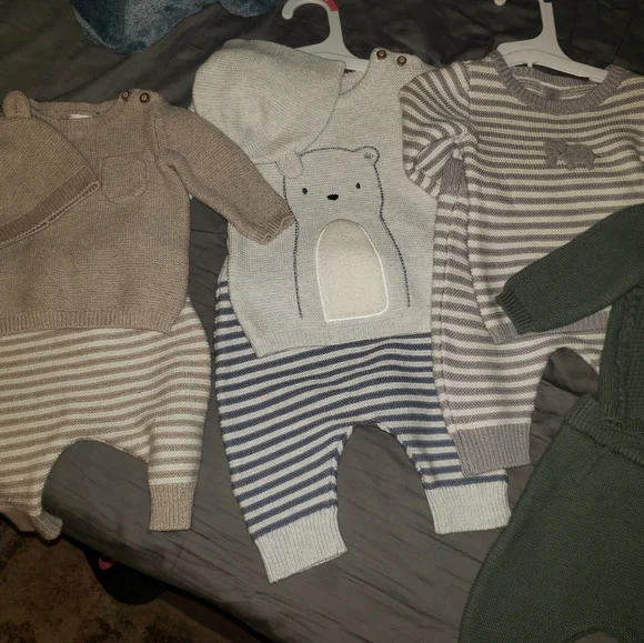 All new 6 sets, 0-3mth carters sweater knit bundle. 2 NWT, 4 worn only once each. 2 with matching hats. Great for fall/winter! So adorable!$140 value