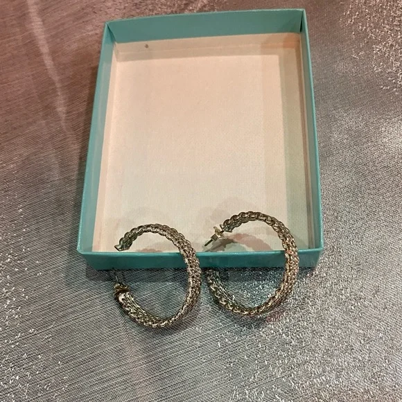 NEVER WORN -- BRAND NEW WITH BOX AND BAGSomerset style hoop earrings marked 925 Sterling Silver. Perfect size hoop