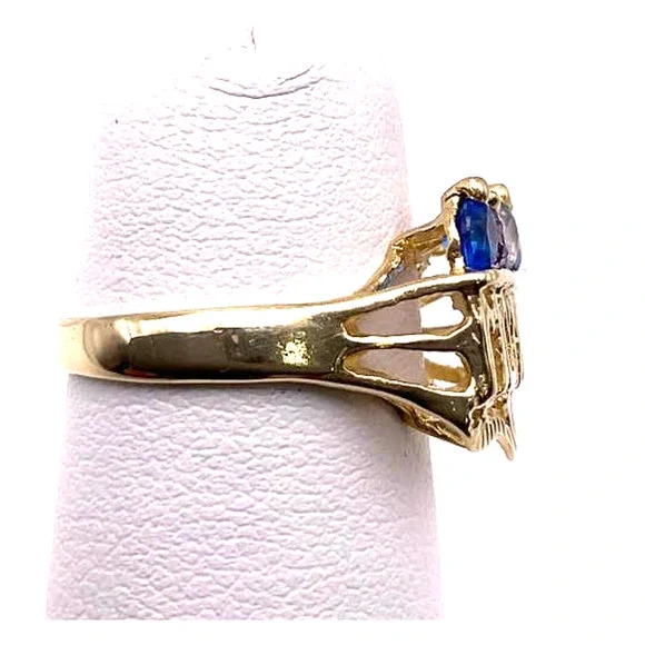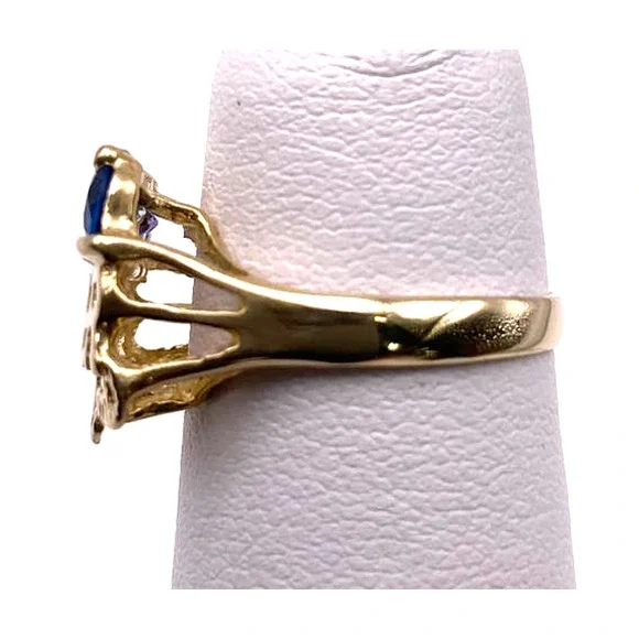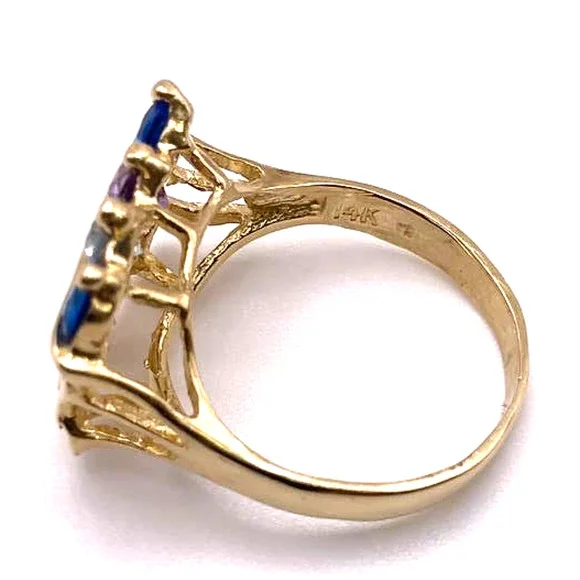 14K Yellow Gold Women´s Mom Ring With Colored stones Blue, Light Blue, Purple, size 5.5(RI37)