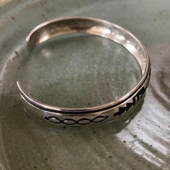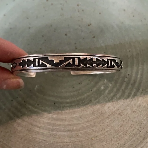 Authentic Thomas Singer vintage hand carved overlay cuffStamped hallmark According to a local Navajo silversmith, many Navajo and Zuni artists have stopped making jewelry pieces the last couple of years and may not produce much in the next year. Additionally, Chinese businesses have started buying the US turquoise mines and are driving the price too high for Native artists. So, hold onto your beautiful pieces of art (if able) and treat them well!