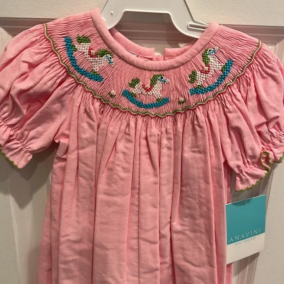 NWT Anavini Rocking horse corduroy smocked pink outfit