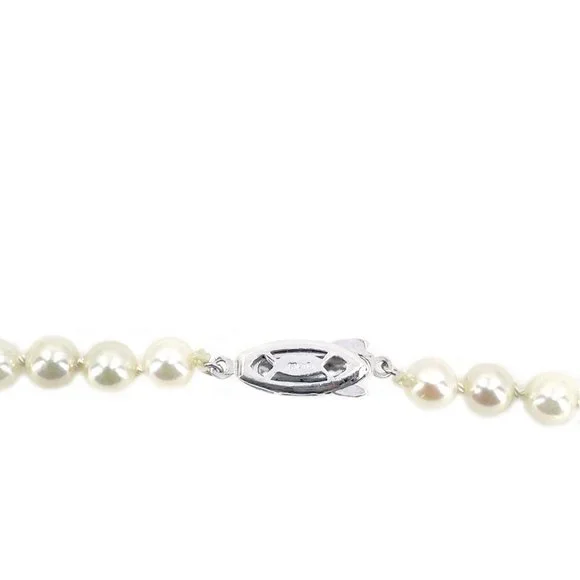 This is a lovely retro modernist Japanese saltwater akoya cultured pearl necklace.The pearls range from 5.50-6.00mm and have great luster with some blemishes andbright rosy pink overtones. A few flat spots resulting from the culturing process.Clasp is in solid sterling silver with a modernist design with hand engraving and milgrain. It is stamped "SILVER" which is an older mark for sterling. Total length is 18.50 inch. From Japan 1940´s-1960´s.All pearls are truly vintage and have only been lightly cleaned and restrung.