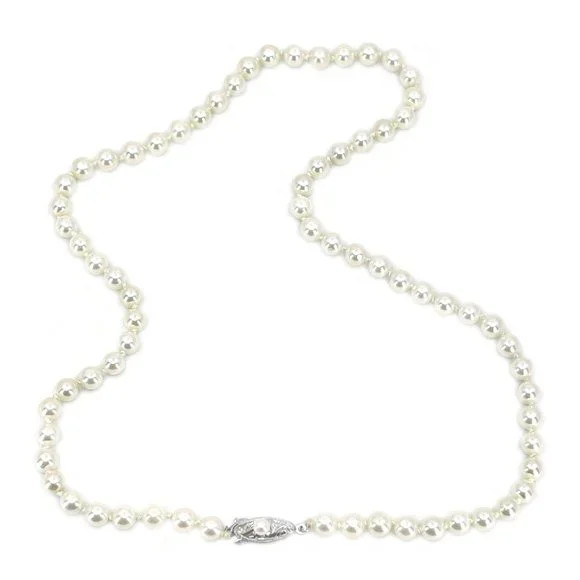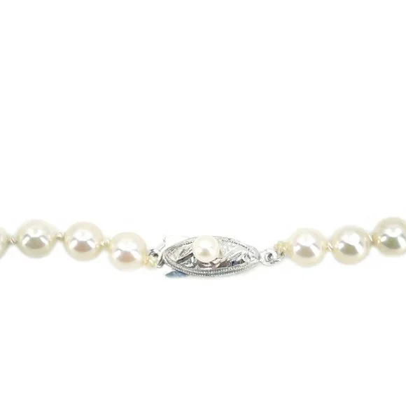 Modernist Vintage Engraved Japan Saltwater Cultured Pearl Necklace- Sterling