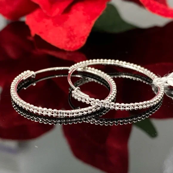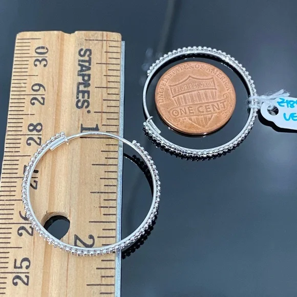 Style: Earrings Earring Diameter: 1.00 inch approx. Hoop Width: 2.00mm approx. Weight: 2.56g approx.Metal: 18K White Gold. NOT GOLD PLATEDNO TRADE!! Photos are enlarged to show...