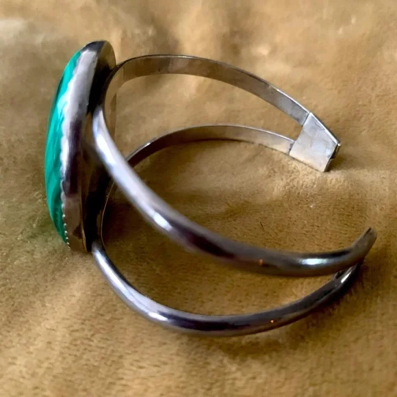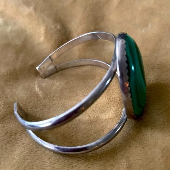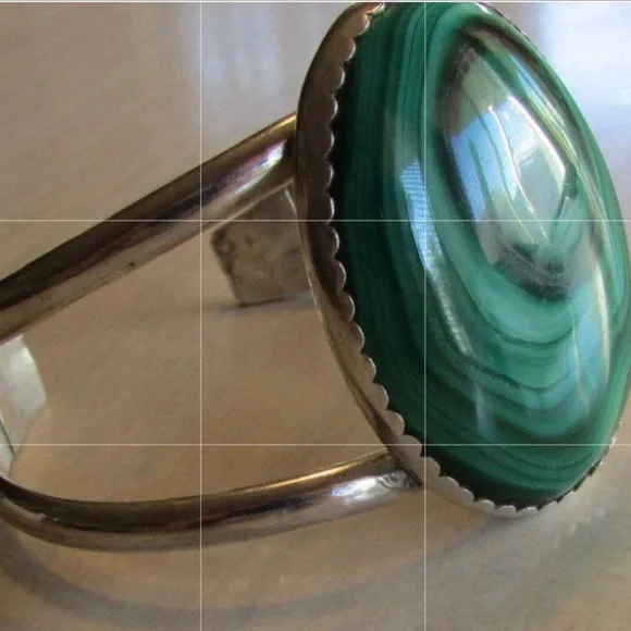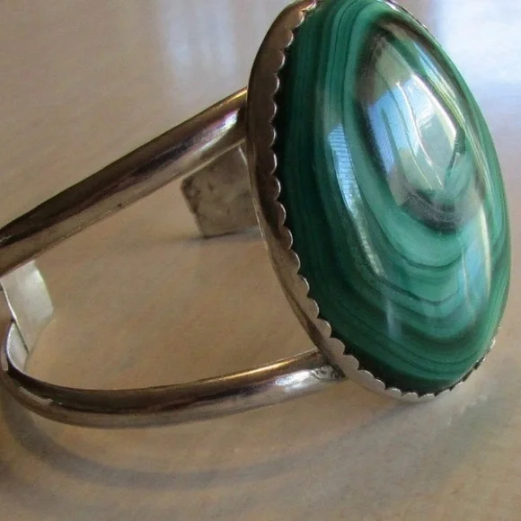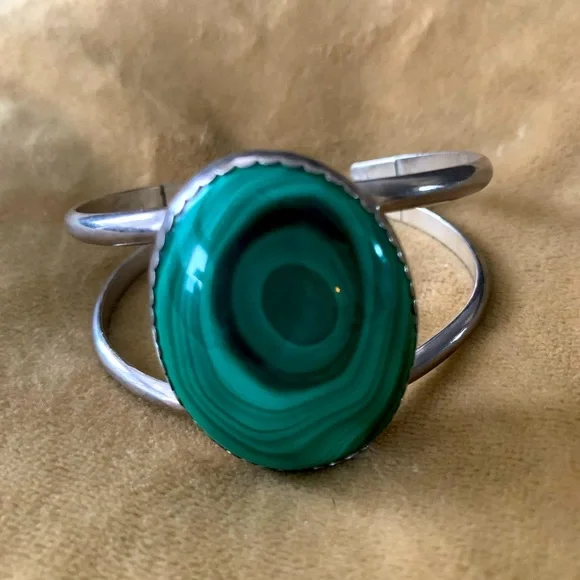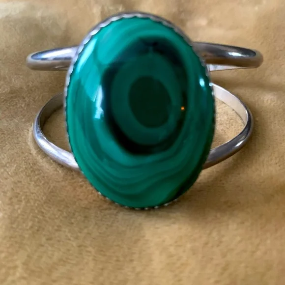 This is an absolutely gorgeous Bullseye Malachite stone set in a simple silver cuff.I bought this because it was stunning but I just don’t wear green so I’d like to pass it on...