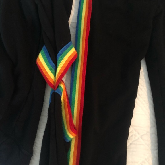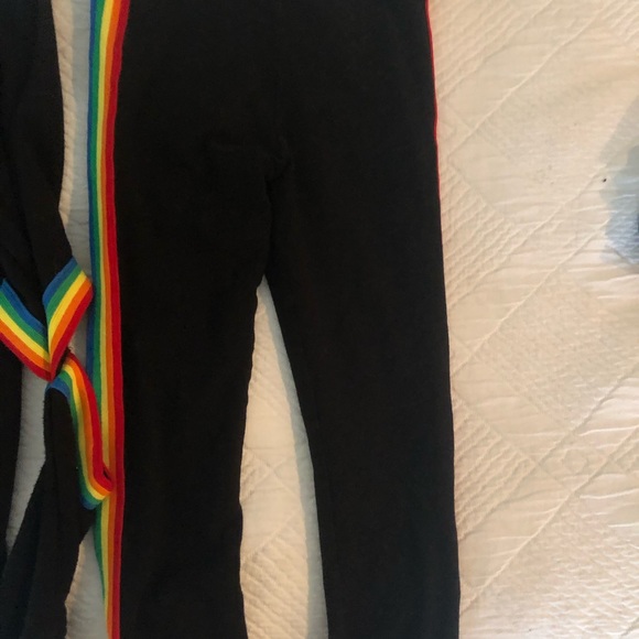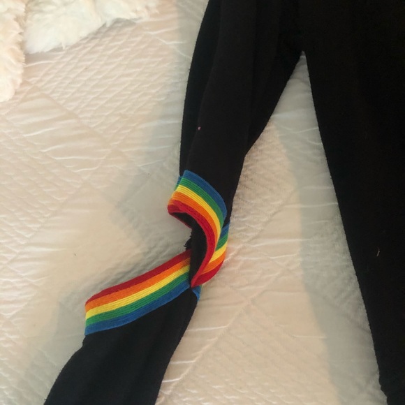 Oh my goodness this outfit is amazing! The sweatshirt has cut outs in the elbows and a rainbow stripe down the side with matching leggings. It is so soft and fits great. The...