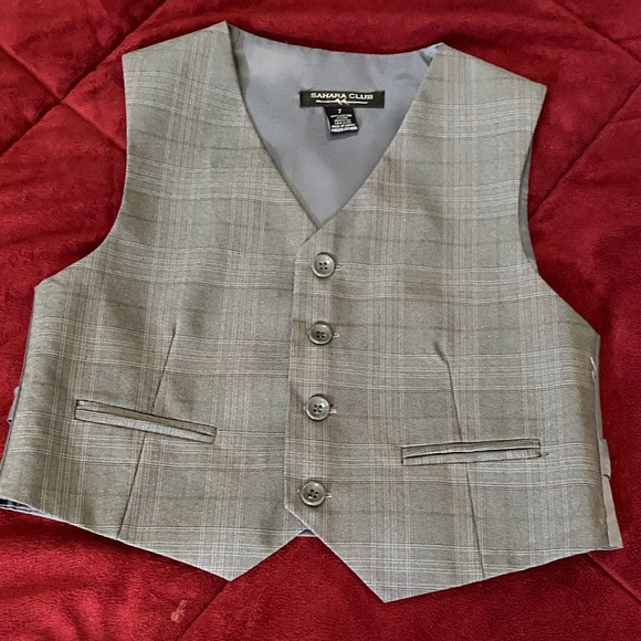 Gray Boys Sahara Club 3-piece Suit with black plaid print! Purple Bergamo shirt (size 8) and tie! (Worn once/like new)