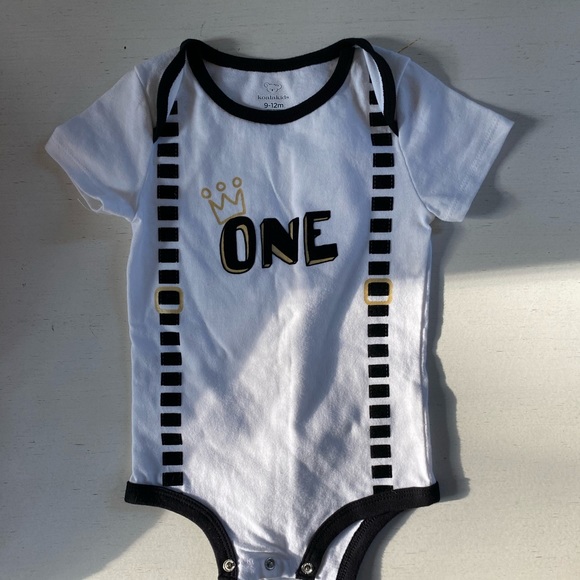 Penguin outfit is 6-9 months Dog onesie is 18 months Sr.Patricks onesie is 9-12 monthsThanksgiving outfits is 9 months ONE onesie is 9-12monthsBoth Christmas outfits are 9months...