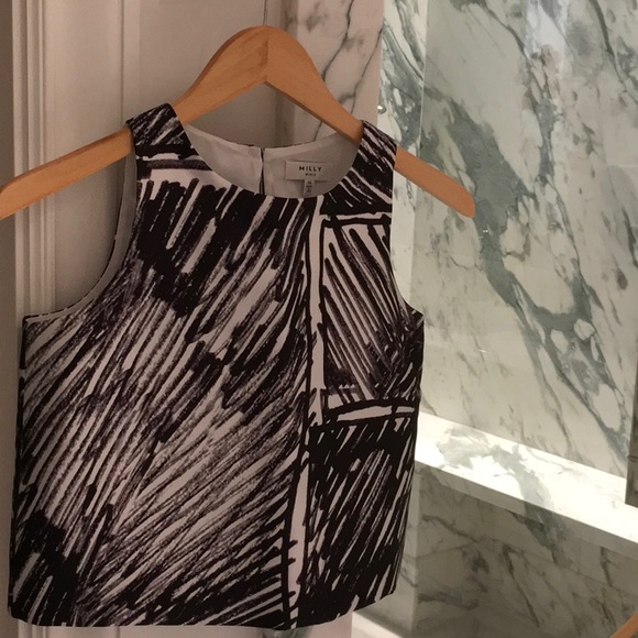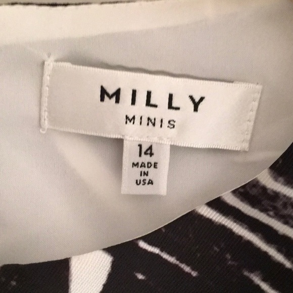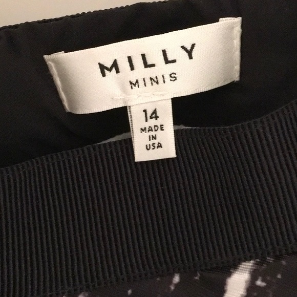 Milly Minis Matching Black & White Abstract Printed Top & Pleated Skirt. Size 14.Dual seam pockets at sides; exposed zip closure at back of skirt.Hidden zipper on side of top in addition to button closure at nape of neck.Dry Clean Only.