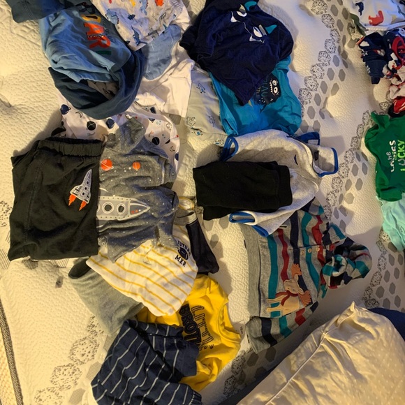 Mostly Carters, stain and tear free. Most of them hardly worn. 12 month is mostly summer outfits. Not sure exactly how many of each thing. 18 months6- 2 piece sets6-3 piece...
