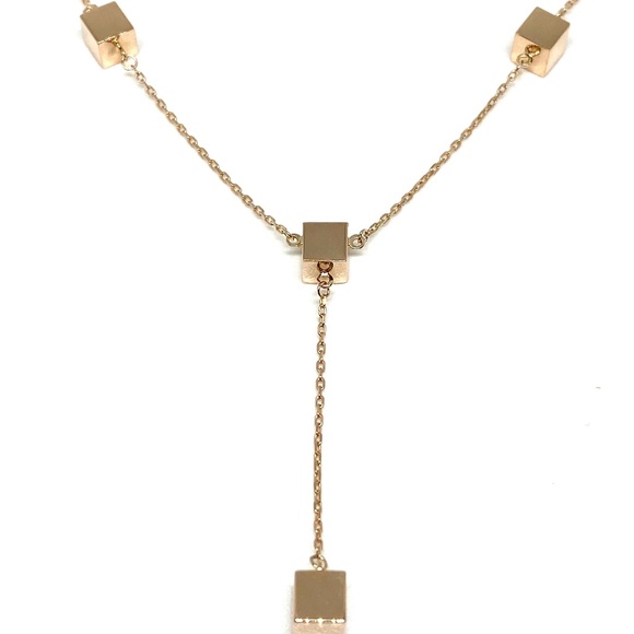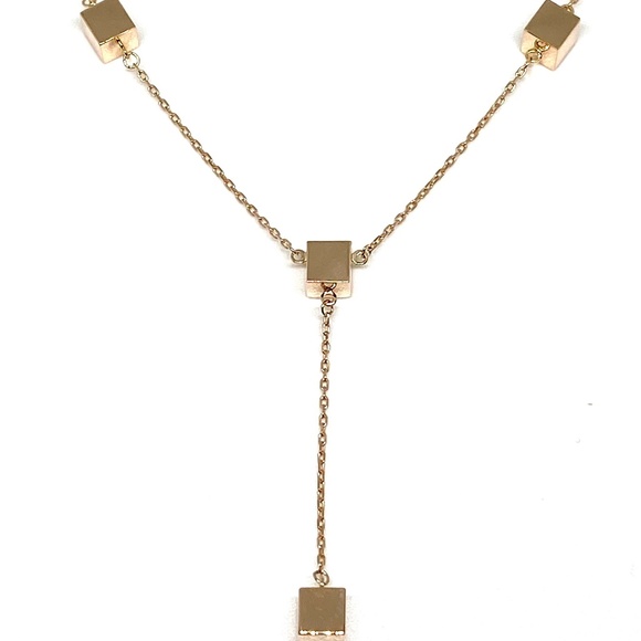 Solid 14K Rose Gold Square Cube Station Lariat Adjustable Chain Necklace-17/18" Excellent workmanshipCube Size: 5 mmDrop Length:1.75 inches Chain Length: 17 to 18 inches Weight:...