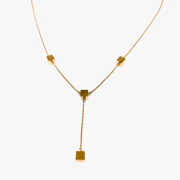 14k YELLOW GOLD CUBE STATION DROP NECKLACE PENDANT