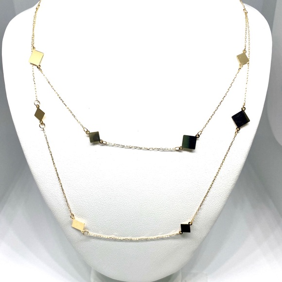 Station Double Strand Layered Adjustable NecklaceExcellent workmanshipLength: 16 to 17 inches (adjustable)Square(s) Size: 8 mmWeight: 2.10 gramsMetal: solid 14k real gold...